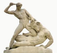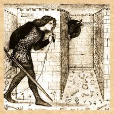 Feeling trapped by circumstance the king commanded his gifted, if recently traumatized, craftsman, Daedalus, to build an inescapable maze where the cursed offspring would be left to wander…the flesh of the kings enemies his only sustenance, murder his only friend. The minotaur did this for a long while and then a naked guy killed him.